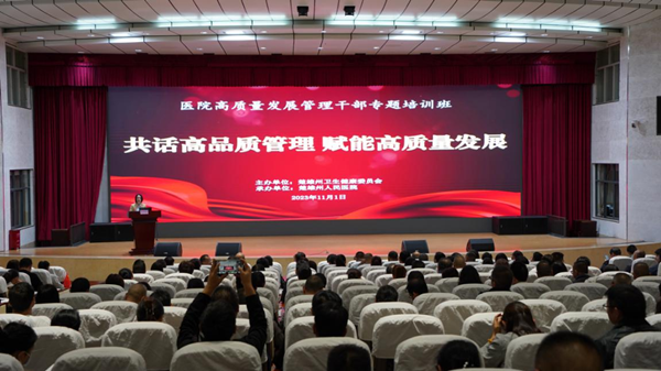 为深入贯彻落实党的二十大精神,落实《云南省卫生健康事业高质量发展三年行动计划(2023—2025年)》,全面提升楚雄州医院干部管理水平,打造一支高素质的现代化管理干部队伍,推动全州卫生健康事业高质量跨越式发展,2023年11月1日,楚雄州医院高质量发展管理干部专题培训在州人民医院新区举行。全州10县市卫生健康局局长、分管副局长、医政股负责人,二级及以上医院(含妇幼保健院、民营医院)党政主要负责人、分管负责人及医务科负责人,州人民医院党政班子成员及全体中层干部参加了培训。
