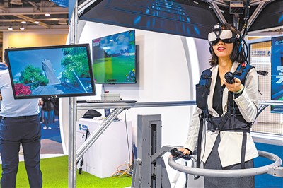 第二十一届中国(苏州)电子信息博览会日前在苏州工业园区举办。图为观众在博览会上体验5G+元宇宙游戏。张 锋摄(人民视觉)