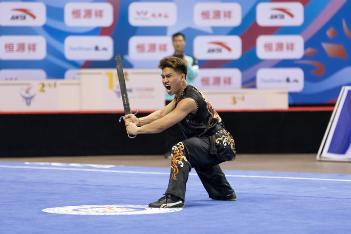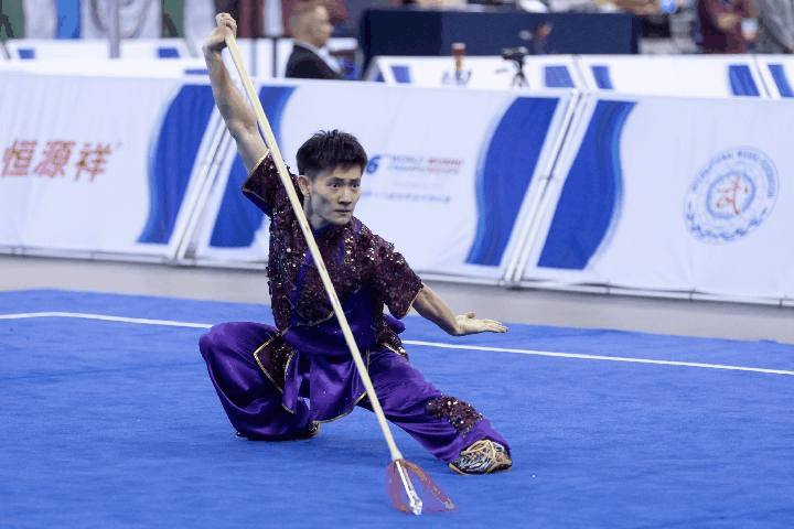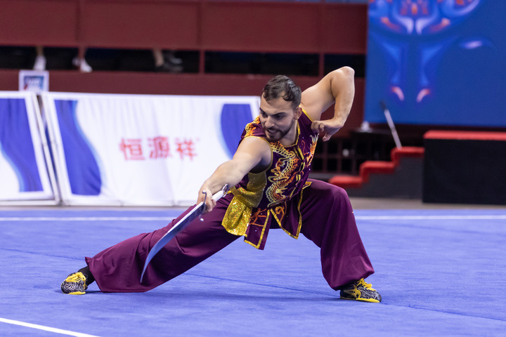 上图为乌克兰选手在男子长拳比赛中,下图为中国选手杜博文在男子南刀比赛中。(田丹摄)