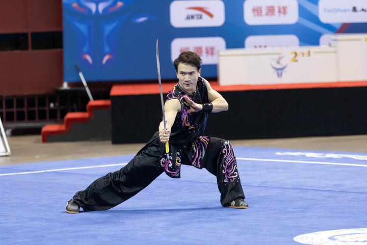 上图为阿根廷选手在女子枪术比赛中,下图为拉脱维亚队运动员在男子太极剑比赛中。(田丹摄)