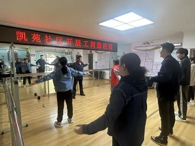 凯苑社区邀请辖区志愿者老师在凯苑社区活动室进行工间操活动,根据社区工作人员的健康状况、年龄和需求选择了最合适的“八段锦”健身活动。在志愿者老师的带领下大家做着整齐划一的动作,有效进行伸展和锻炼,让久坐电脑前紧张的身体得到了舒缓,释放了压力。适当锻炼可以改善我们社区工作人员的健康状况,提高身体健康水平,培养良好生活习惯,还可以提升集体主义精神,发展社区健康文化,营造和谐工作氛围,增加同事之间的沟通和互动,大大提升工作效率。