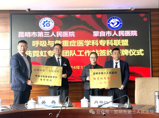 2024年1月11日,昆明市第三人民医院“陆霓虹专家团队工作站”签约授牌仪式在蒙自市人民医院举行。这是陆霓虹主任在全省各地建立的第九个专家团队工作站。