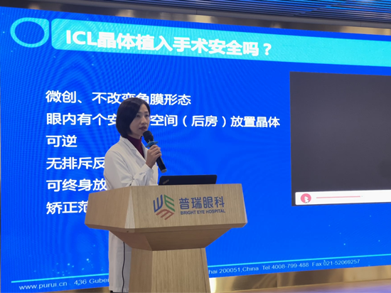 全新的ICL技术术式升级AKICL,让更多的中低度数散光患者拥有了更好的ICL近视矫正服务,可以在不需要特地定制带散晶体的情况下,运用手术设计方式在术中矫正散光,从而即让患者费用得到节省,也让部分不适合散光定制晶体的患者获得了更好的术后视觉体验。让在场的患者和家长对近视手术有了更全面的了解。她表示,选择正规的眼科医院和专业的手术医师是保证手术安全和效果的关键。