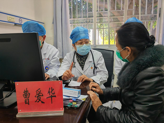 1月23日,在大理州巍山县人民医院内分泌科专家门诊诊室,大理州人民医院内分泌科专家曹爱华为前来就诊的患者免费看诊。当天共免费问诊50余人。