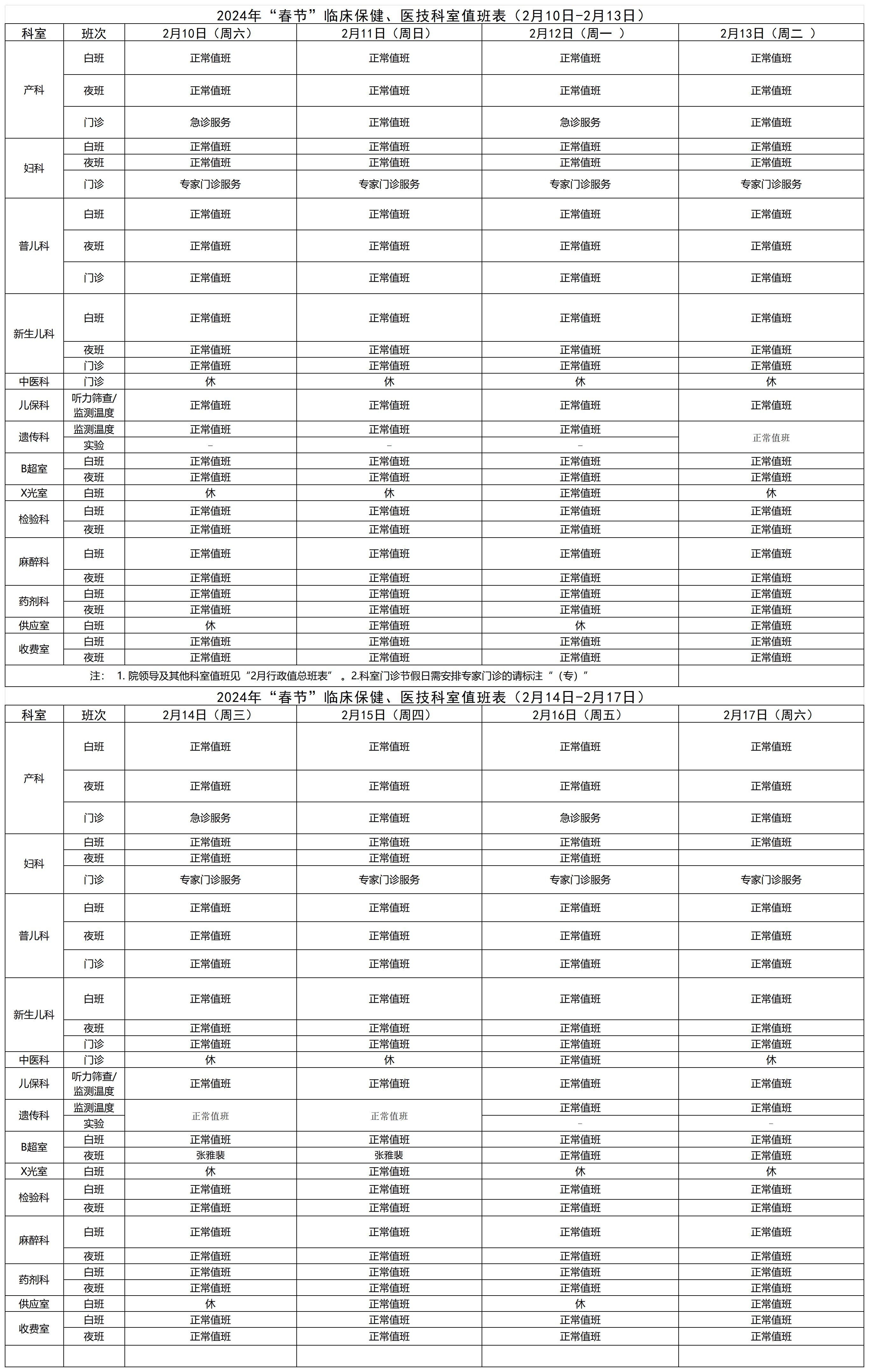 新春佳节即将来到来,为方便广大市民朋友在春节期间看病就医,云南省妇幼保健院在近期发布了春节假期间临床保健、医技科室门诊值班安排。