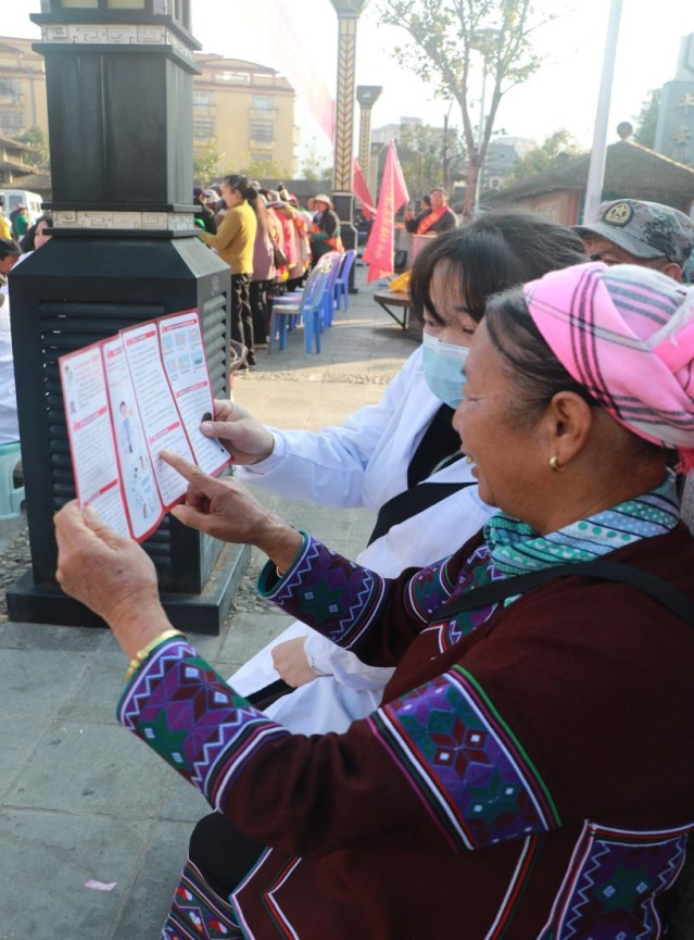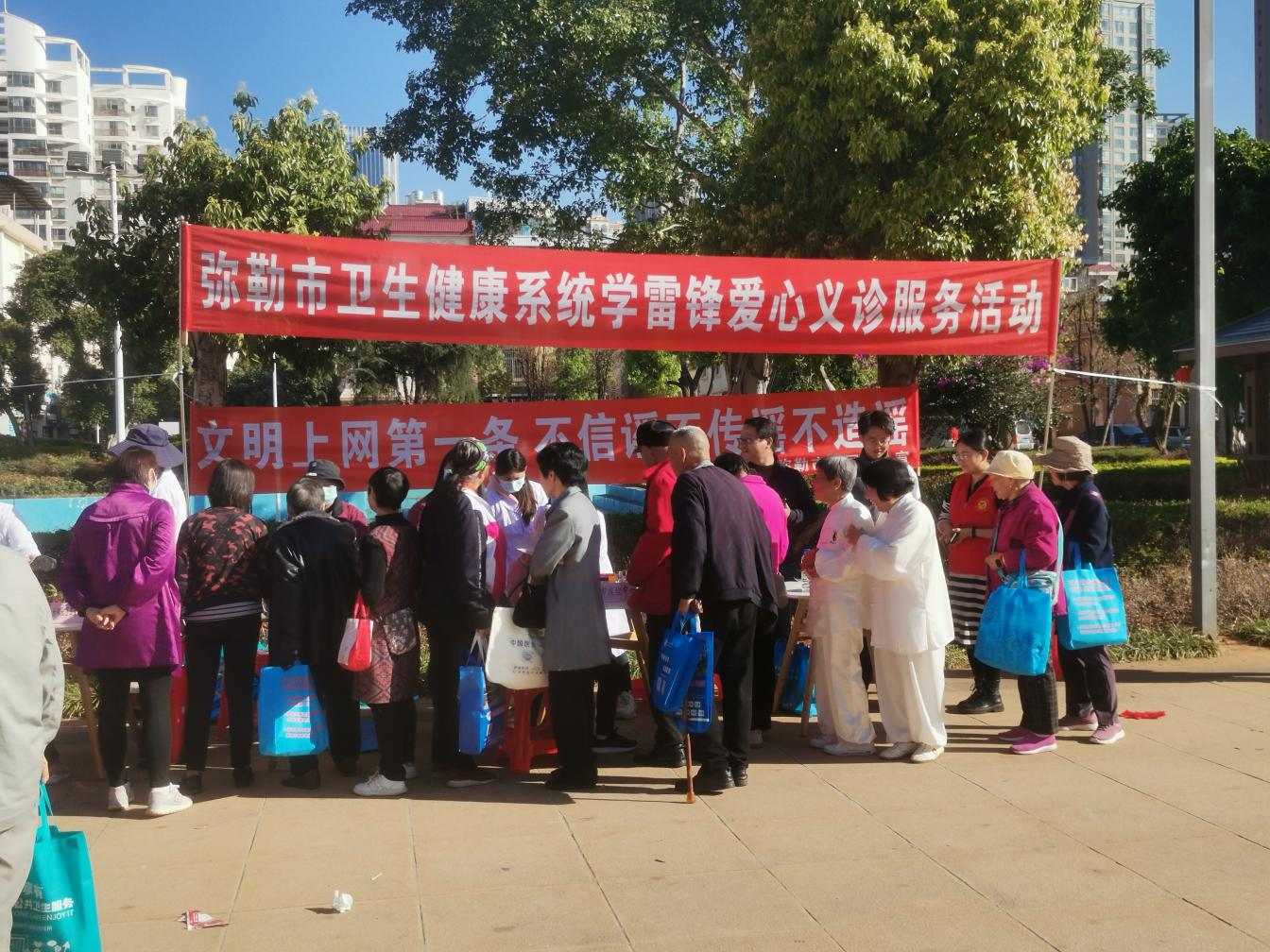 弥勒市卫生健康局、市计生协会从市级五家医疗卫生单位抽调16名医护人员组成学雷锋爱心义诊志愿