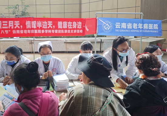 3月8日,云南省老年病医院各科室医务人员至昆明五里多农博广场,举办义诊活动,这也是农博广场与医院党建共建工作的重要实践,旨在以女性健康为中心,为广大市民提供全方位健康咨询和诊疗服务。