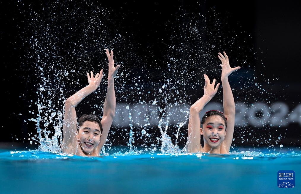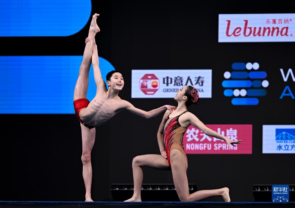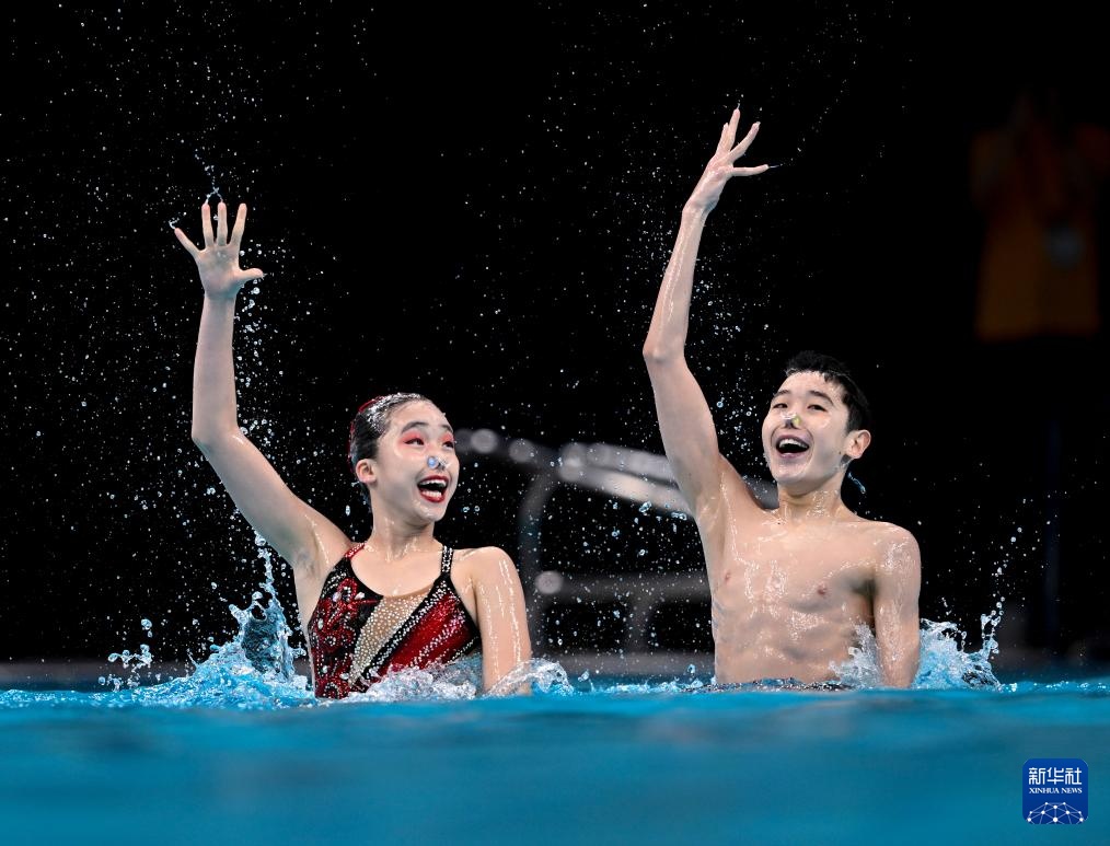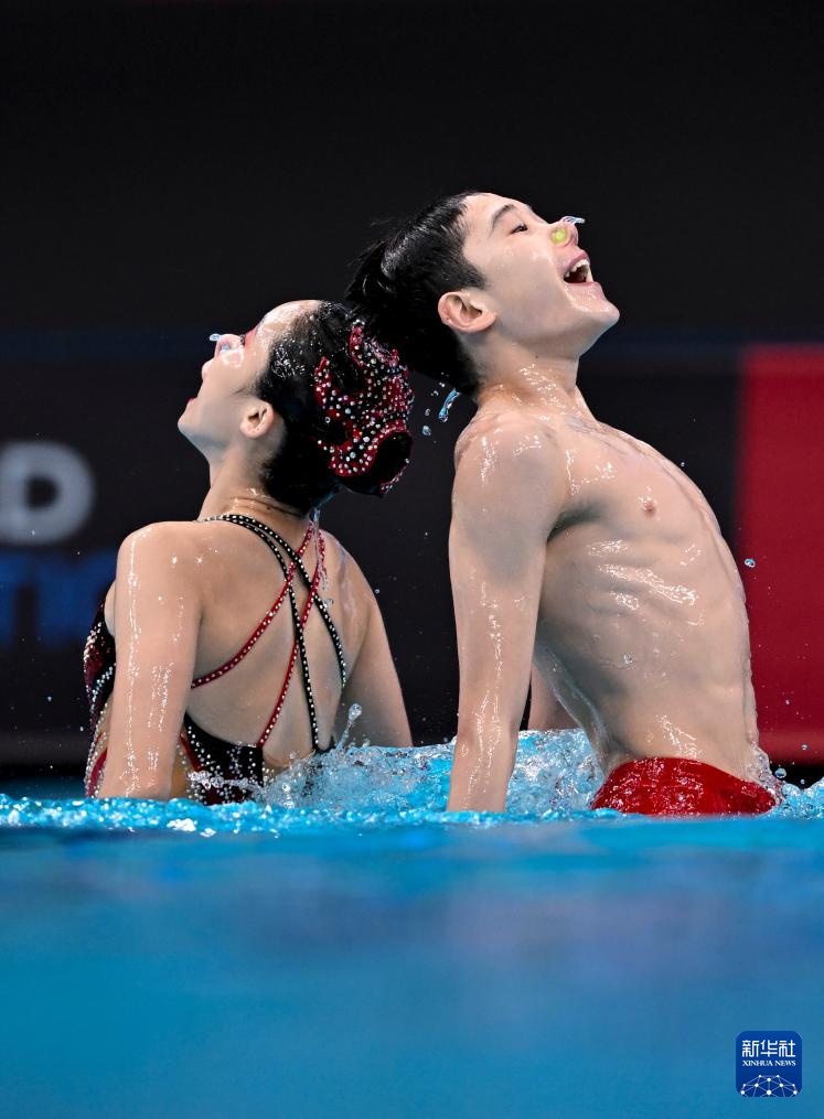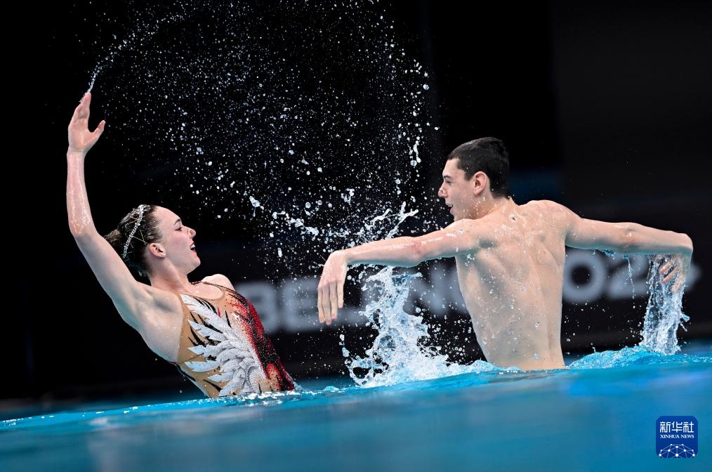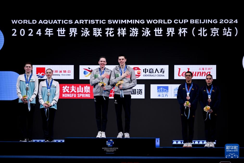 当日,2024年花样游泳世界杯(北京站)混合双人自由自选决赛在国家游泳中心“水立方”举行。