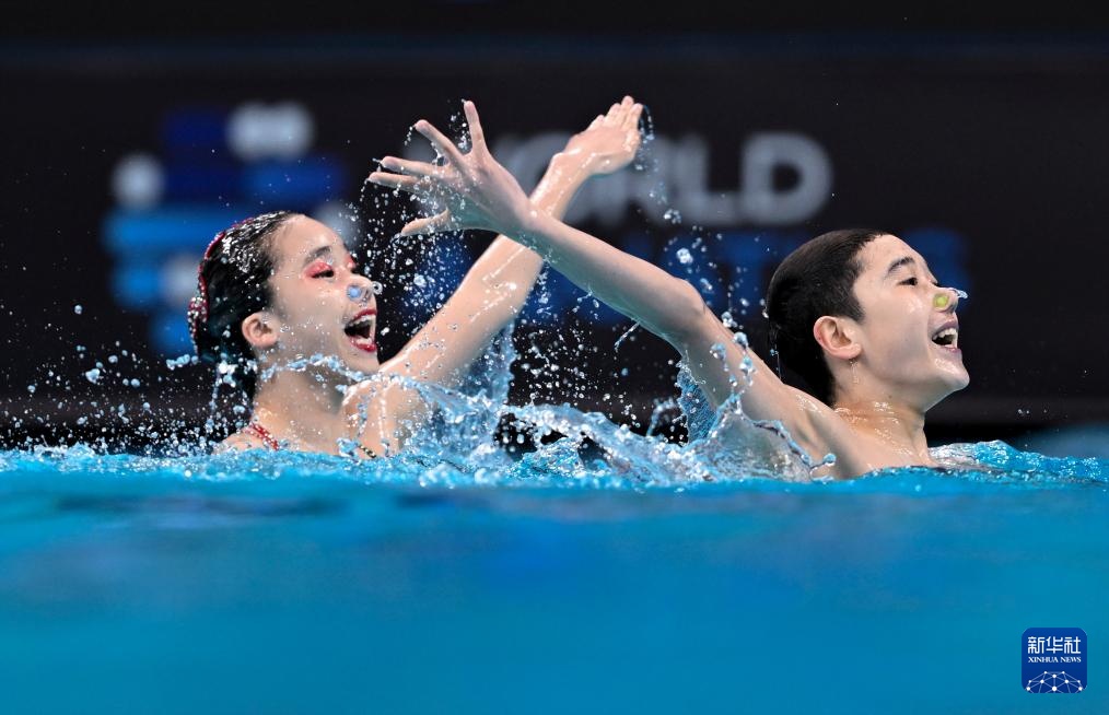4月7日,中国组合郭牧兮/顾嘉虞(上)在比赛中。最终他们以148.1042分的成绩位列第四名。新华社记者 夏一方 摄