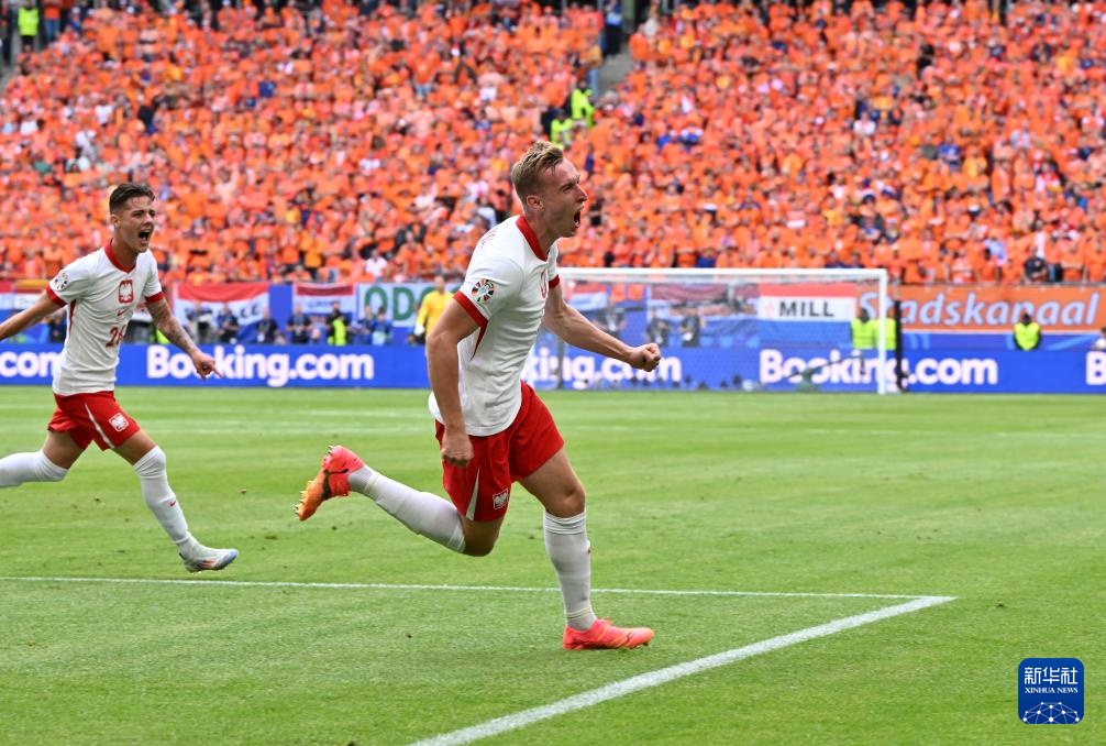 当日,在德国汉堡进行的2024年欧洲足球锦标赛小组赛D组首轮比赛中,荷兰队2比1战胜波兰队。