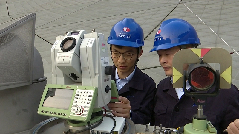“中国天眼”团队的技术人员正在操作设备,开展科研工作。