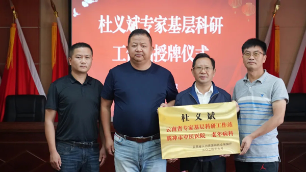 7月3日,云南中医药大学第二附属医院“杜义斌专家基层科研工作站”在腾冲市中医医院举行建站授牌仪式。医院领导、老年病科医护人员等50余人参加会议,会议由医院党委书记李洪杰主持。