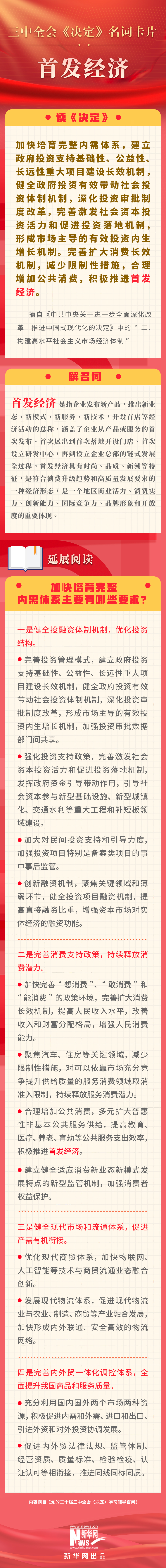 原标题:三中全会《决定》名词卡片天天学:首发经济