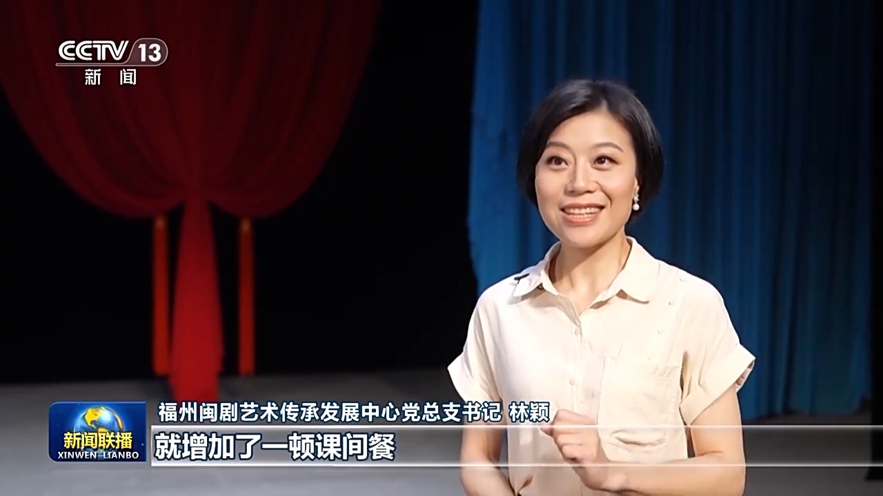 福州闽剧艺术传承发展中心党总支书记 林颖:新教学楼的练功房非常宽敞明亮,墙上有巨大的镜子,有厚厚的地毯,还有吊扇。当时我们这一届十几岁的孩子练功,体力消耗很大,所以觉得我们应该要补充营养,就增加了一顿课间餐。