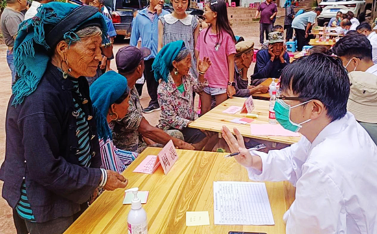 在义诊现场,前来咨询问诊的哈尼族群众络绎不绝,不少诊台前排起了长队,医疗专家耐心倾听患者病情,有问有答,为前来就诊的群众提供健康咨询、卫生健康科普知识。同时,与乡、村医生开展老年人等重点人群健康走访工作,完善健康档案、开展健康体检,测量血压、血氧饱和度、呼吸、心率等,及时掌握他们的身体健康状况,给予科学合理的用药、饮食、康复指导,最大程度保护群众身体健康和生命安全。