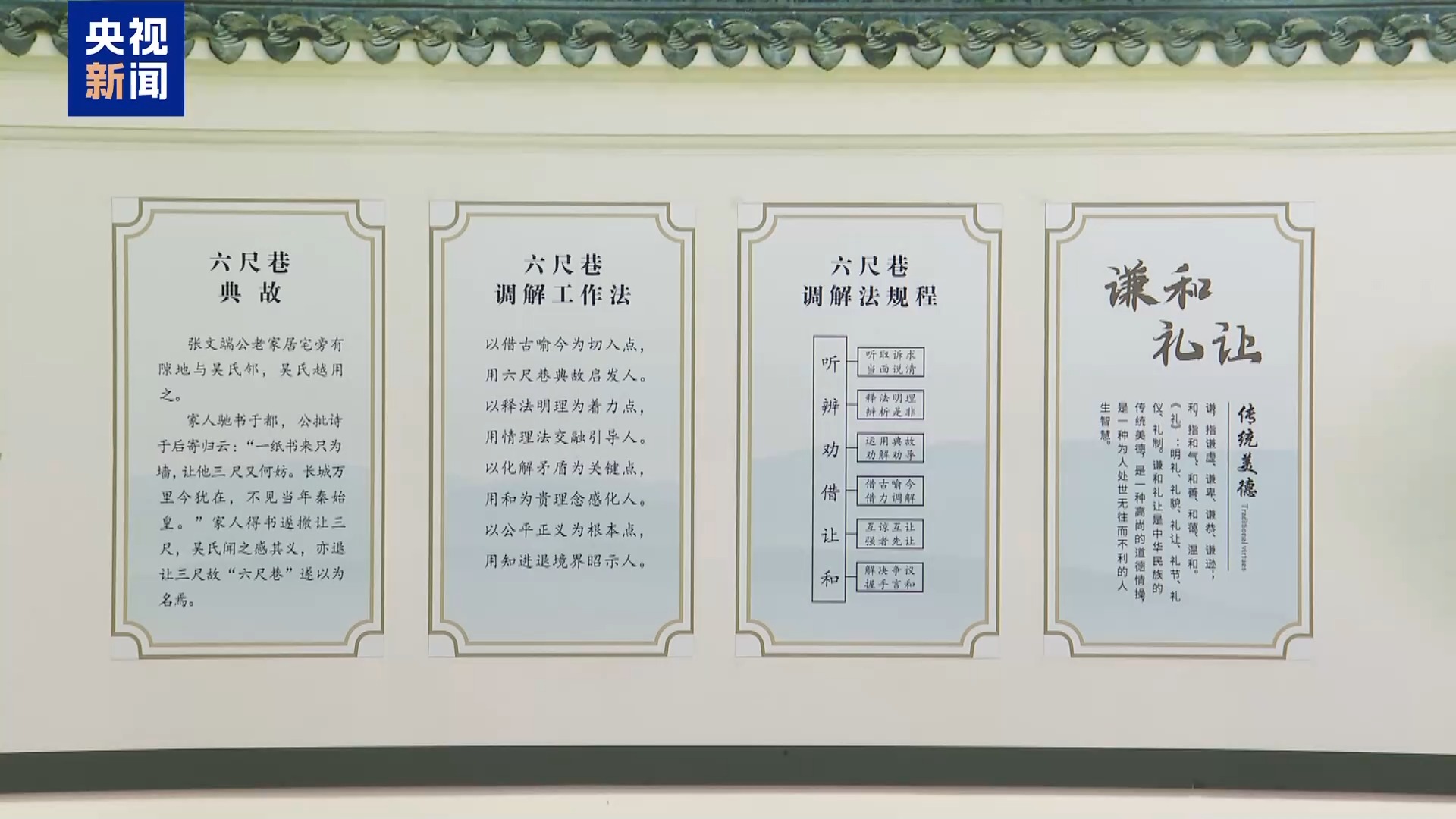 眼下,桐城设立覆盖基层单位的“六尺巷调解室”300余处,成为基层社会治理的地方品牌。2023年,“六尺巷调解法”被写入最高人民法院工作报告;同年获评全国新时代“枫桥经验”创新工作法先进典型,并入展枫桥经验陈列馆。中华民族礼让、包容、和谐的传统美德,正在新时代焕发出新的光芒。