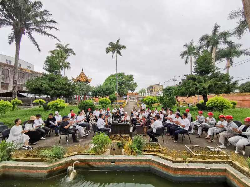 在陇川糖厂厂区小院,来自云南省文化馆与陇川农场社区的党员齐聚一堂。省文化馆党总支书记、馆长主持了主题党课,陇川农场社区党委书记杨新江介绍了陇川农场的历史沿革和基本情况。在场党员以座谈的形式聆听了老一辈共产党员亲自讲述陇川农场自20世纪50年代成立以来那些不畏艰险、开拓边疆、屯垦戍边的动人故事,深入感受和体会老一辈共产党员身上那种攻坚克难、砥砺奋进的奋斗精神和“逢山开路、遇水搭桥”的开拓精神。