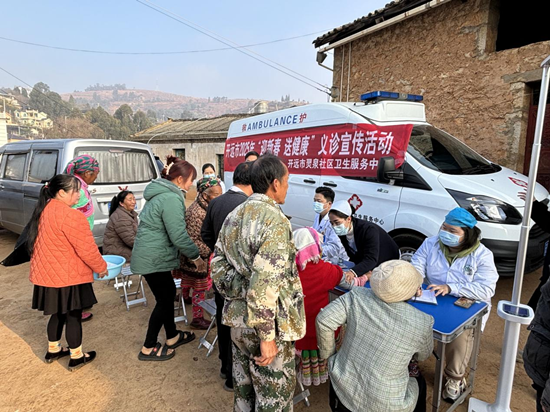 1月22日,红河州开远市灵泉社区卫生服务中心组织医共体专家团队,带着满满的健康“年货”,走进崩打村,开展健康义诊与带教活动,让乡亲们在家门口迎接新春的健康与快乐。