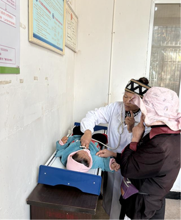 云南网联合云南省人口和卫生健康宣传教育中心的“公卫医疗政策推行”主题调研采风小组在威远镇联齐村卫生室,见到了正在给儿童进行健康体检的拉祜族村医李文芳。李文芳医生今年52岁,已从事村医工作25年。