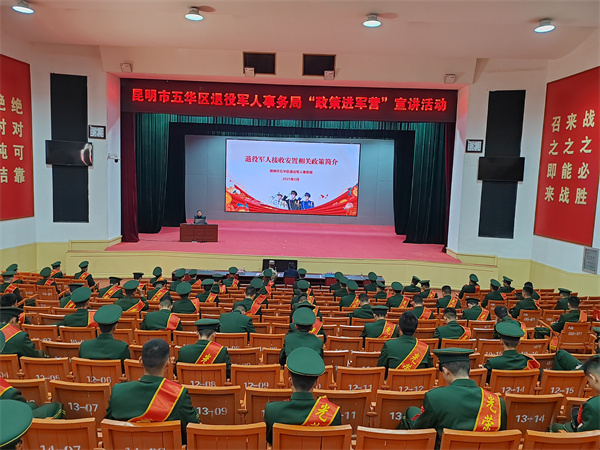 2月28日,昆明市五华区退役军人事务局组织业务骨干走进驻区武警某部向即将退役的官兵开展“进军营、送政策、暖兵心”宣讲活动,积极帮助部队官兵深入了解和准确把握退役军人相关政策,科学合理规划退役后的生活和职业发展。