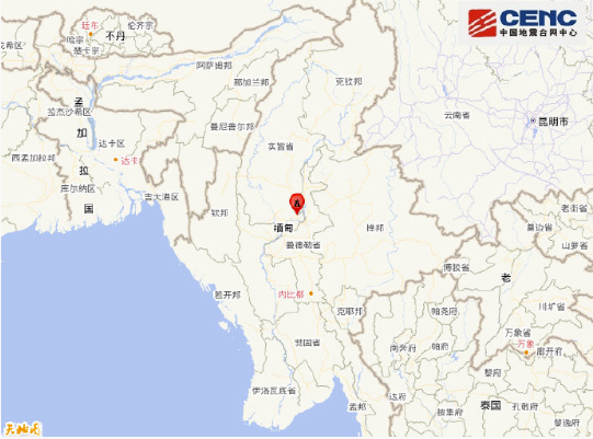 中国地震台网自动测定:03月28日14时20分在缅甸附近(北纬22.05度,东经95.84度)发生7.7级左右地震,最终结果以正式速报为准。