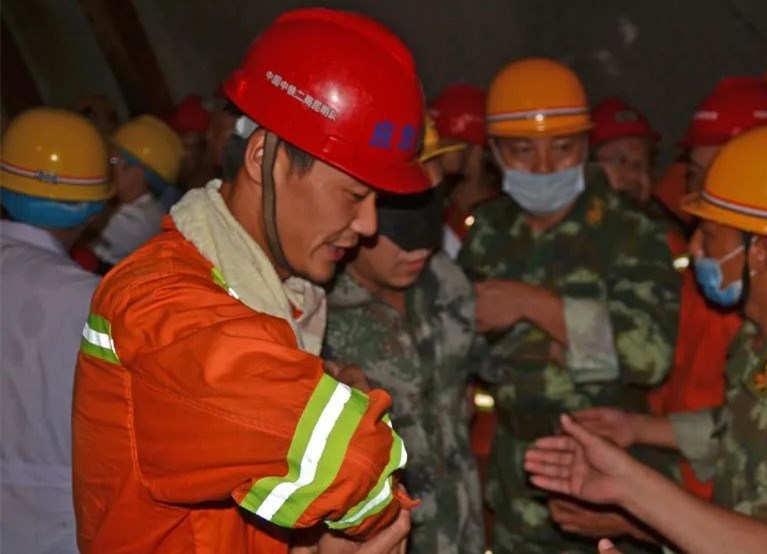 根据探测结果,我们发现了一名被埋压的老人。我们马上分成两个组,一组开始继续搜索探测生命迹象,另外一组马上营救老人。我们采用先上后下、后进前出的方式,在一个狭小的空间内用到了破拆、竖井、横向通道等技术,从晚上12点到次日凌晨4:56分,历经近5个小时把老人救了出来。救出老人之前,我们还在破拆过程中搜救出了两名遇难者。