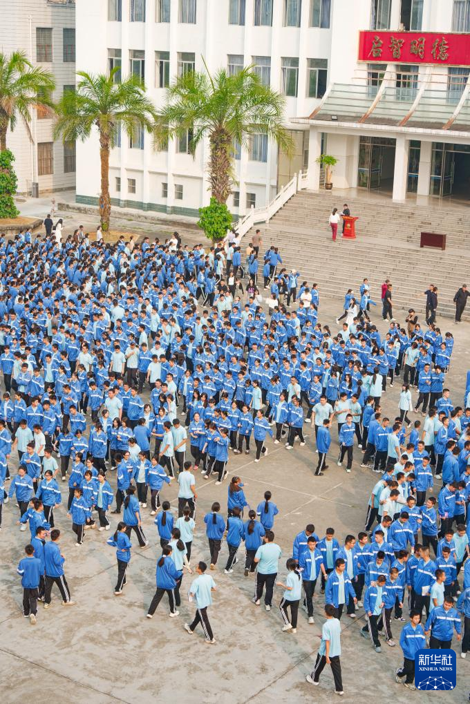 3月31日,瑞丽市第一民族中学师生在操场上活动。