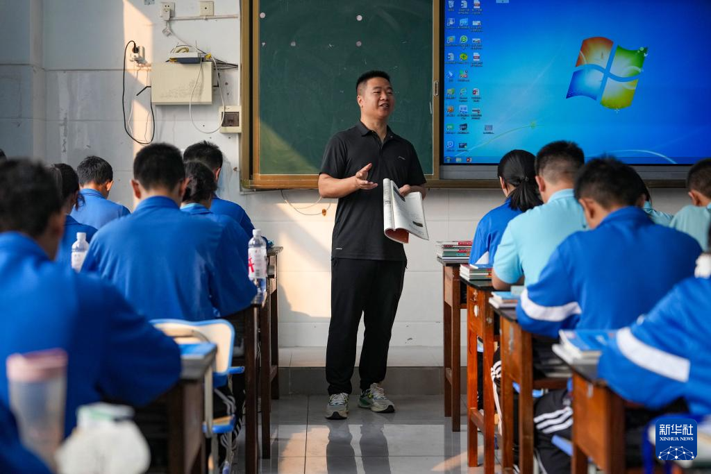 3月31日,瑞丽市第一民族中学老师明宗龙在教室里给同学们上课。