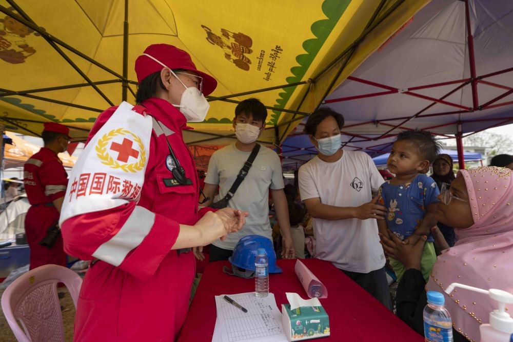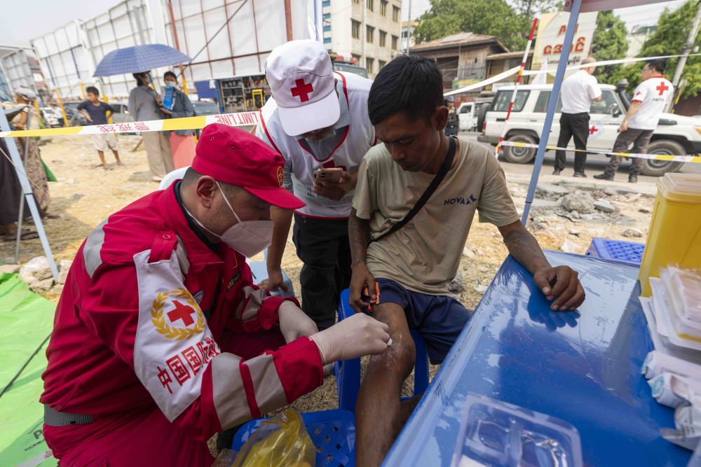 原标题:镜头直击|中国救援队伍为缅甸曼德勒灾民震后义诊