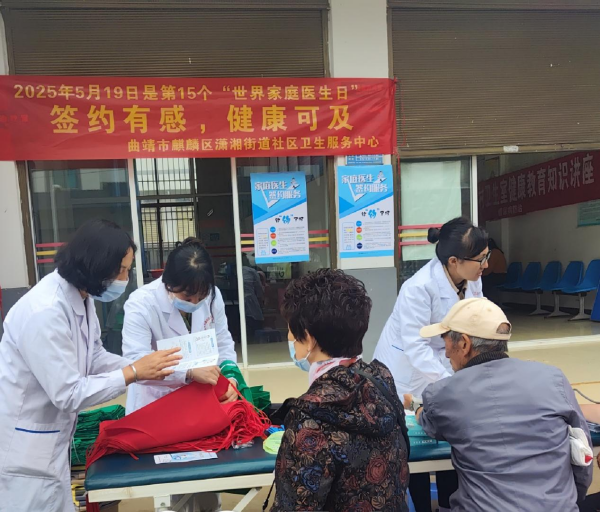 在曲靖市麒麟区湘街道社区卫生服务中心的活动现场,家庭医生们为过往居民提供免费的血压、血糖测量服务,并耐心解答居民们关于健康管理、疾病预防、康复护理等方面的疑问,向居民普及家庭医生签约服务政策,介绍签约后可享受的个性化健康管理、优先转诊、上门服务等福利。