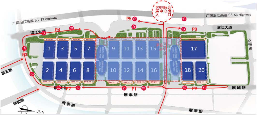 导航:深圳国际会展中心即可,紧临沿江高速,经由“国际会展中心”和“福海”两个收费站可直通展馆。外地车牌工作日早晚高峰限行(可以在深圳交警官网申请免限行通行证)。