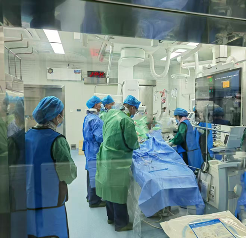 但是血液动力学极度不稳,室性心律失常频发,电复律达到30余次。在多学科团队的紧密协作下,历经10余小时生死博弈、30余次电击除颤,患者的心跳及血流动力学逐渐稳定。心内科团队抓住宝贵窗口期,果断决策实施急诊PCI手术。