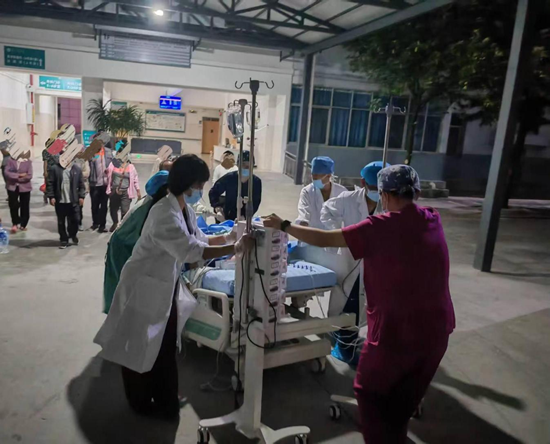 在远程指导下,卫生院医护人员迅速为患者实施了口服药物、吸氧、心电监护以及建立静脉通路等一系列急救措施,并进行紧急转诊。