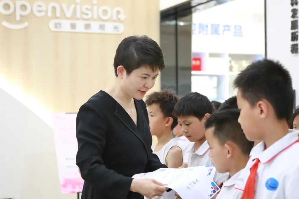 为深化科普效果,欧普康视眼健康科普基地特别组织三年级学生代表参观“奇妙的眼睛”眼健康科普馆。通过沉浸式分解眼球结构模型、互动光影设备及趣味视力游戏,孩子们直观感受到眼睛的精密与脆弱,进一步树立“每个人都是自身健康第一责任人”的意识。活动尾声,昆明视康眼科创始人、欧普康视眼健康科普基地负责人张明静亲手为每位参观的孩子颁发“爱眼小卫士”荣誉证书。