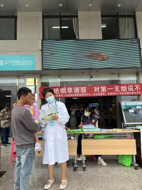 在孟连县,孟连县人民医院联合县疾控中心在医院门诊大厅开展世界无烟日宣传活动。活动向广大群众宣传烟草的危害、戒烟的好处、戒烟基本方法与技巧等知识,同时发放控烟宣传手册及宣传物品,播放控烟视频,开展现场戒烟咨询及义诊活动。活动接受群众现场咨询100余人,发放宣传资料300余份。