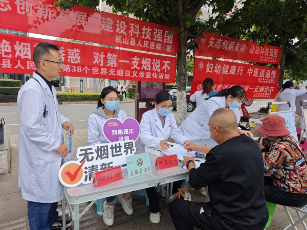 在砚山县,县人民医院组织医务人员开展无烟日义诊活动,为群众提供咨询问诊、免费测量血压血糖服务,同时向群众发放健康折页、健康教育处方,科普烟草危害及戒烟知识。医院同步开展院内职工无烟专题健康知识讲座,从烟草对身体的危害、控烟政策及戒烟技巧等方面深入讲解,以“内部先行”模式发挥医疗工作者在控烟行动中的示范引领作用。