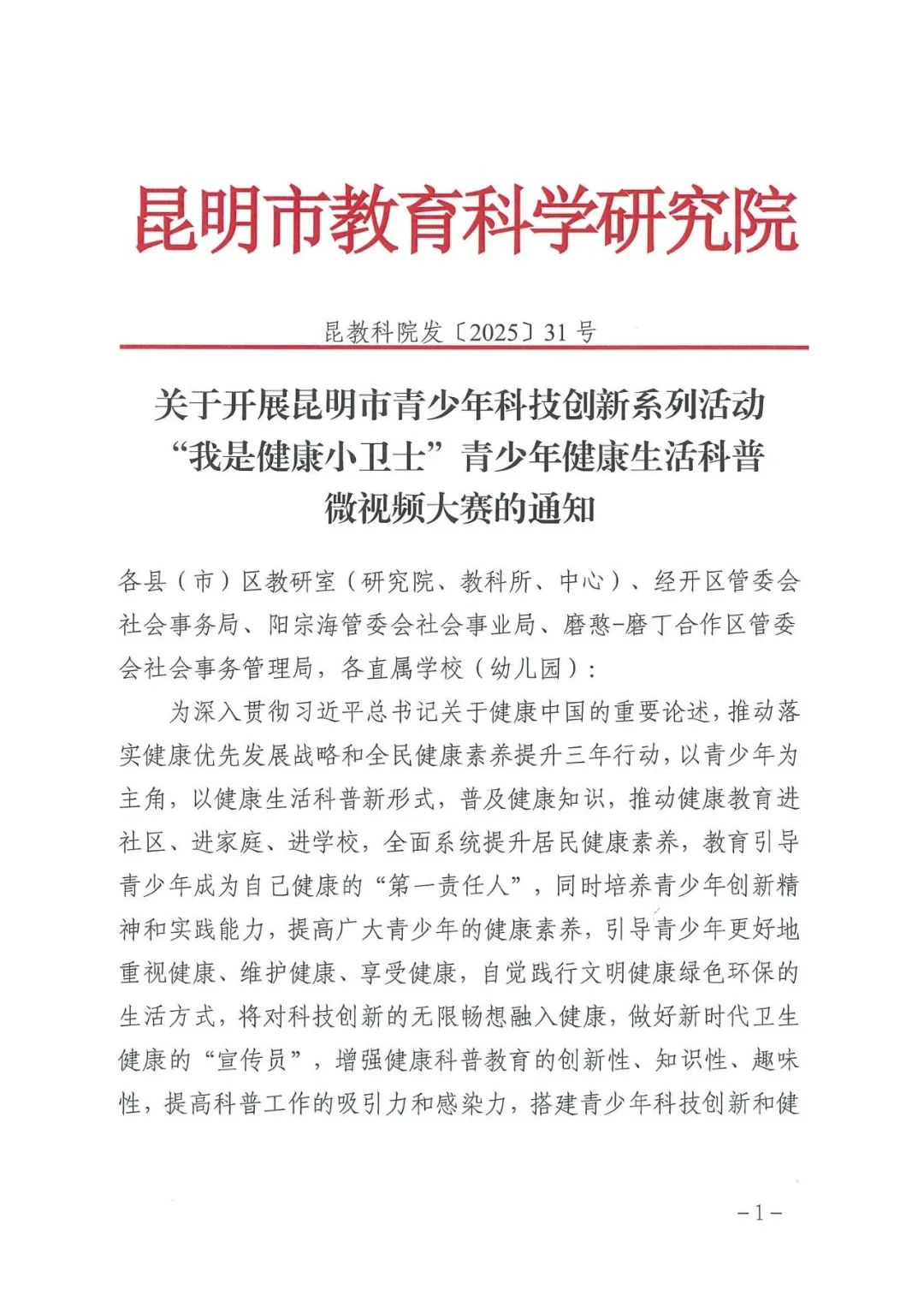 快来报名!“我是健康小卫士”青少年健康生活科普微视频大赛开始了