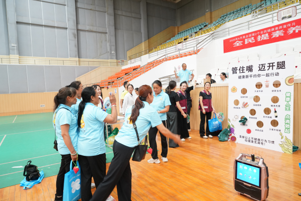 在健康知识问答赢奖品区,群众踊跃参与健康知识答题,题目涵盖科学膳食、运动指南等内容,答对者可兑换“健康八件套”、健康布袋、健康摇扇等奖品,现场掀起“学健康知识,赢健康好礼”的热潮。