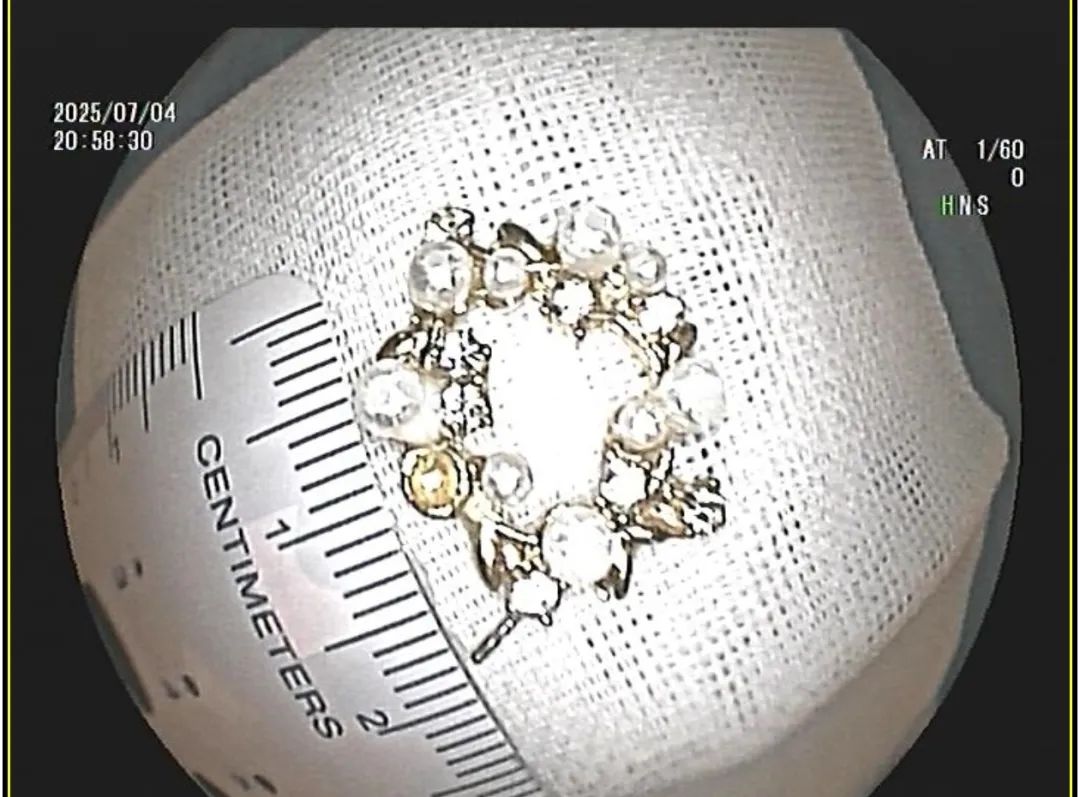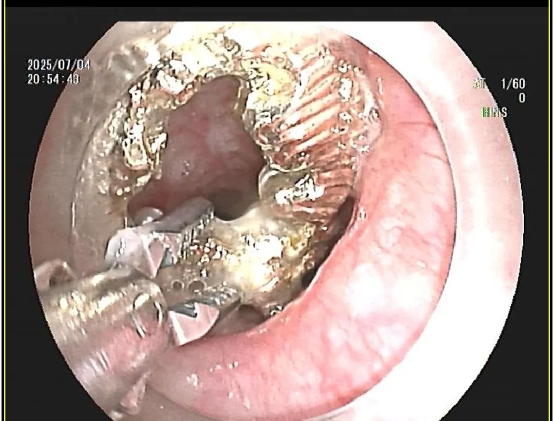 考虑到异物较大且材质坚硬,消化内科团队迅速决定采用无痛胃镜技术进行紧急取出。在麻醉科配合下,手术顺利进行。医生通过胃镜精准定位异物,并使用专用器械,小心地将耳环从女童胃内完整取出。术后,女童恢复良好,未造成消化道损伤。