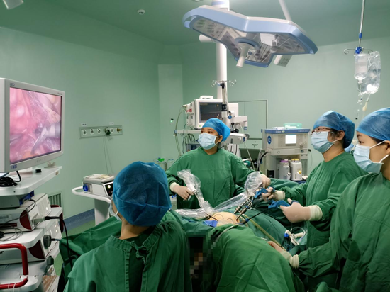 2025年5月8日,应“宾川所需”,上海公利医院派出了第七批对口帮扶医疗队到宾川县,陈娟随队第三次来到宾川县人民医院,立即投入帮扶工作中。5月14日,一名因异常子宫出血的患者,到县医院做宫腔镜检查时发现病变,随后因病变切除宫颈后宫颈病检提示原位癌。于是在上海公利医院陈娟主任的指导下,县医院妇产科主任陈天云、妇科主任赵建英、主治医师吴家丽以及普外科曹洪洋主治医师的共同协作下,成功为患者实施“腹式全子宫切除术+盆腔淋巴结清扫术+盆腔粘连分离术+双侧输卵管切除术部分大网膜切除术+经尿道膀胱镜输尿管导管插入术+肠粘连松解术”,手术历时4个小时。
