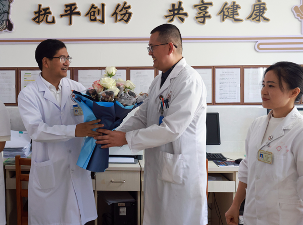 普洱市墨江县中医医院为庆祝第八个“中国医师节”,围绕“德馨于行,技精于勤”为主题,开展看望慰问名老中医及优秀医师代表活动,医院负责人到科室看望慰问一线医师,送上鲜花和慰问品,并通过他们向奋战在一线的广大医务工作者致以节日的问候和诚挚的祝福。