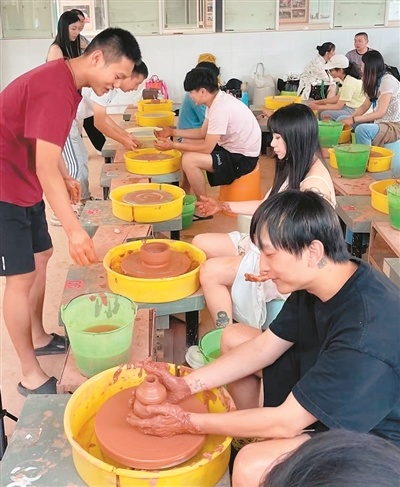 两岸媒体人在建水紫陶产业园区体验陶艺。