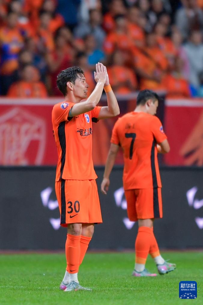 8月23日,成都蓉城队球员周定洋在比赛中庆祝进球。