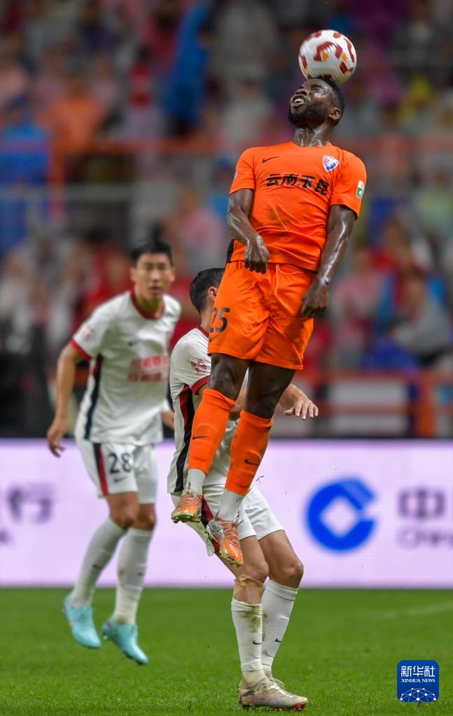 8月23日,云南玉昆队球员叶楚贵(上)在比赛中拼抢。