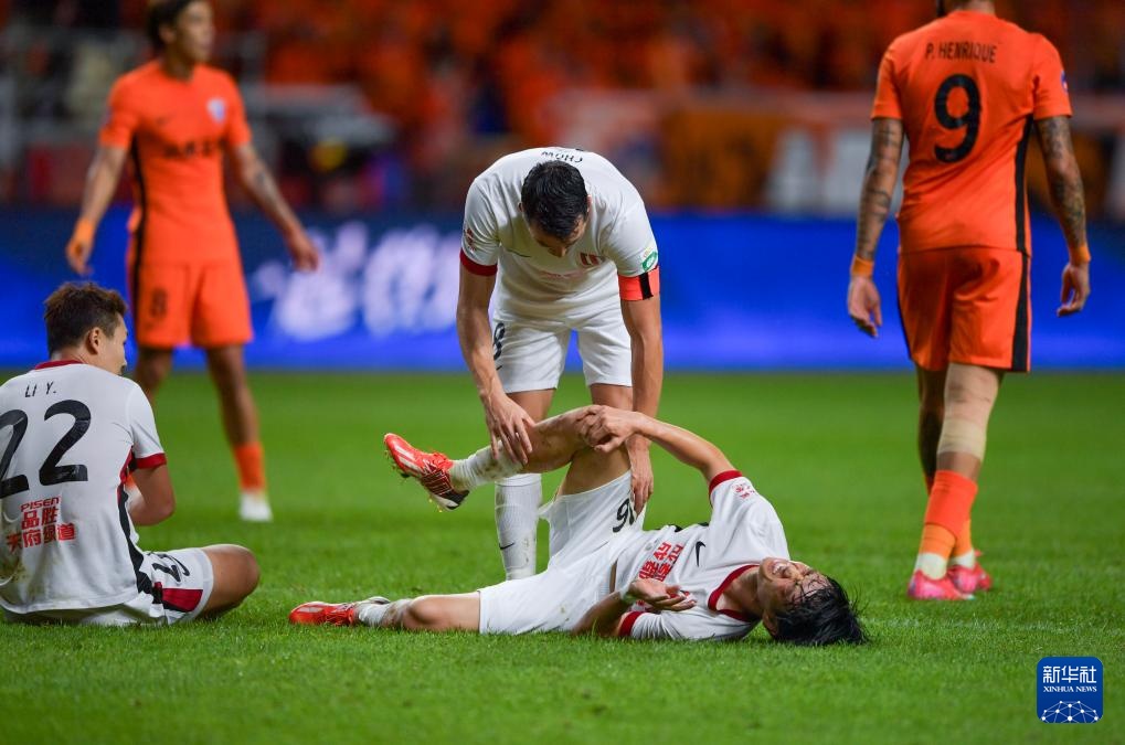 8月23日,成都蓉城队球员杨明洋(下)在比赛中受伤。