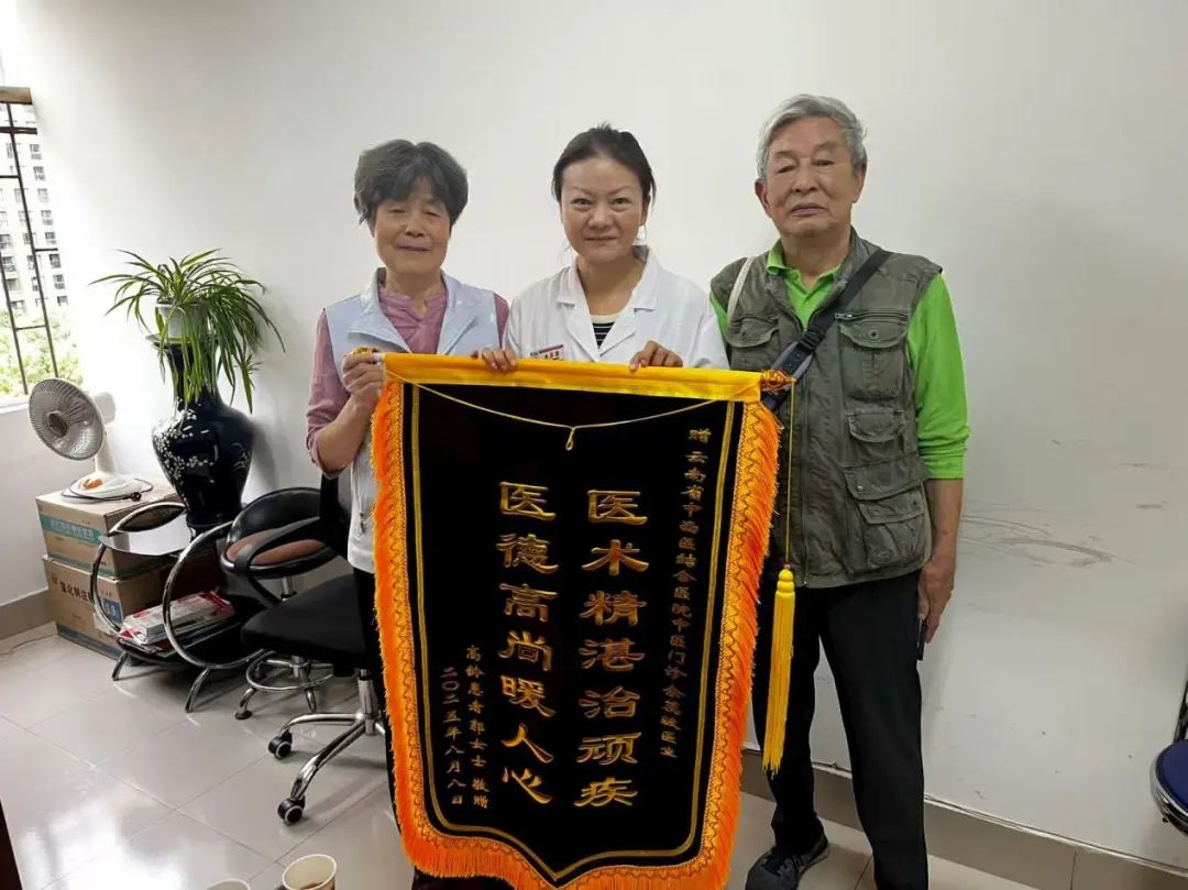 近日,家住昆明的七旬老人郭奶奶在老伴儿的陪同下来到云南省中西医结合医院的6楼,将印着“医术精湛治顽疾,医德高尚暖人心”的锦旗郑重递给医院党委书记龙鲸。