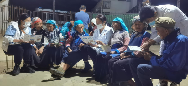 夜幕降临,云南省红河哈尼族彝族自治州屏边苗族自治县湾塘乡阿卡村的院坝里暖意融融。近日,一支由党员医护人员组成的“夜访医疗队”来到这里,为群众开展健康知识宣讲和义诊服务,将党的关怀与健康保障送到群众家门口。