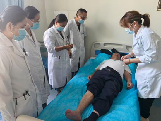 义诊结束后,医疗队专家深入临床科室开展教学查房,结合典型病例进行现场分析,示范问诊技巧,优化治疗方案,并围绕诊断思路、治疗规范与康复要点等内容,“手把手”开展临床带教。他们在细致为住院患者会诊的同时,有效提升了当地医务人员对疑难疾病的诊疗能力。