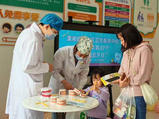 曲靖市潇湘街道社区卫生服务中心借助“对点帮扶”及“专家工作站”模式,特邀麒麟区人民医院口腔科专家团队,在潇湘街道健康体验馆开展了全国爱牙日宣传活动。活动现场,口腔专家用孩子能听懂、感兴趣的方式传递口腔健康知识,医护人员结合趣味教具与动画演示,系统讲解科学膳食与口腔健康的联系,着重科普酸性食物对牙齿的危害;还现场示范正确刷牙方法,指导儿童掌握口腔清洁要点,强化居民“定期口腔检查”的理念;活动尾声还为参与儿童颁发“口腔健康小卫士”勋章,并发放护牙工具套装,鼓励他们向家人传递口腔健康知识,推动家庭共护口腔健康。