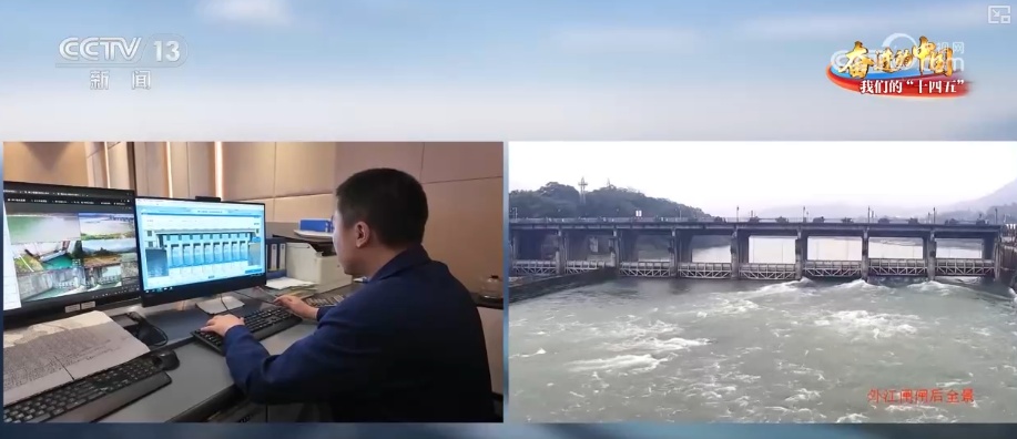 就在记者拍摄的过程当中,外江的两孔闸门正在缓缓开启,而这个指令就是从距离这里2公里以外,“十四五”期间刚刚建设的都江堰灌溉指挥中心发出的。